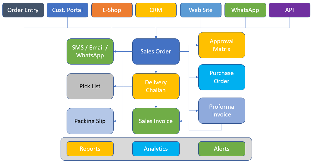 A copy of the order is given to the dispatch department and they manually make delivery challans for dispatch. |